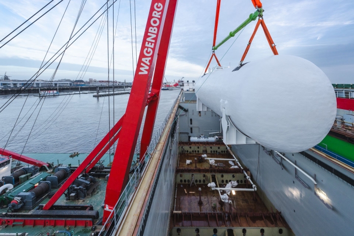 Резервуары были изготовлены бельгийской компанией Geldof (Engicon nv) и доставлены в Нидерланды для монтажа на верфи Royal Niestern Sander в Порту Делфзейл. В течение ближайших месяцев будет завершена обвязка резервуаров трубопроводами, что обеспечит безопасную и эффективную перекачку сжиженного CO2.
